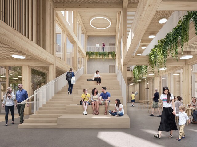 - Holzbauweise aus nachwachsenden Rohstoffen – CO₂ wird nicht nur eingespart, sondern im verbauten Holz langfristig gebunden.