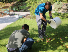 Yannick Reifinger und Martin Strasser sind erst so richtig glücklich wenn sie sich im weitläufigen Garten und Grünland rund um den Standort betätigen können. Gerade jetzt im Herbst wird geerntet, Unkraut gerupft, Laub gerecht und Gräser zusammengebunden. Es wird alles für die kältere Jahreszeit gerichtet.