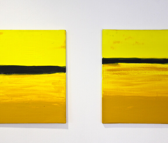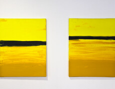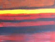 Andreas Kinberger entwickelte sich über die Farben zum Zeichnen. Zuerst waren es die Farben und große Flächen, an denen er sich ausprobierte. Er verwendet wenige Farben, die er ausgewogen zueinander einsetzt. Dieser Rothko ähnliche Stil ist auf den großen Leinwänden keine Überforderung für ihn. Mit Ruhe und bedacht arbeitet er beim Gestaltungsprozess.