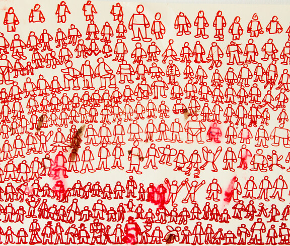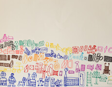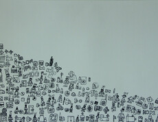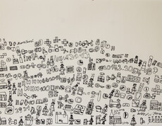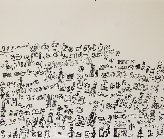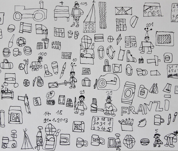 Zum Malen und Zeichnen kommt Franz Stadler seit dem Jahr 2000 in das Atelier der KUNST St. Pius. Franz Stadler ist ein Zeichner, ein Erzähler und präsentiert hyroglyphenartige Bildgeschichten im Comicstil - fein ausgeführt mit Tusche. Er beginnt am Blattinneren links unten seine Symbole zu zeichnen, in der Grundlinie kommen häufig immer dieselben Zeichen vor, von denen er einige benennen mag. Zu den weiteren Zeichen sagt er wenig. Oft stehen Zahlen über den Personen, die er aber auch nicht zuordnet. Franz Stadler zeichnet „einfach so“, sagt er. Einfach so entfließen seinem Stift unzählige individuelle Symbole und Menschen, die er uns auf dem Papier vorstellt.