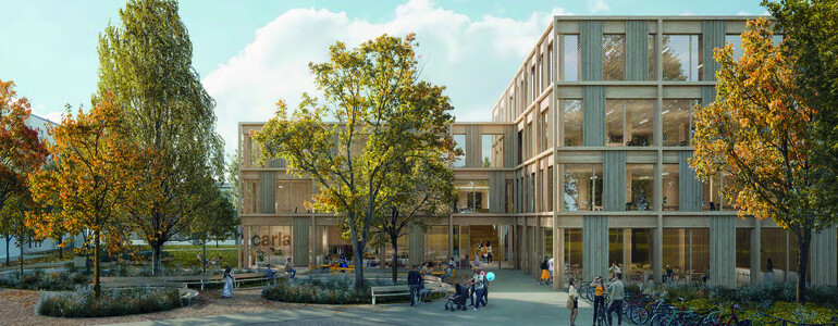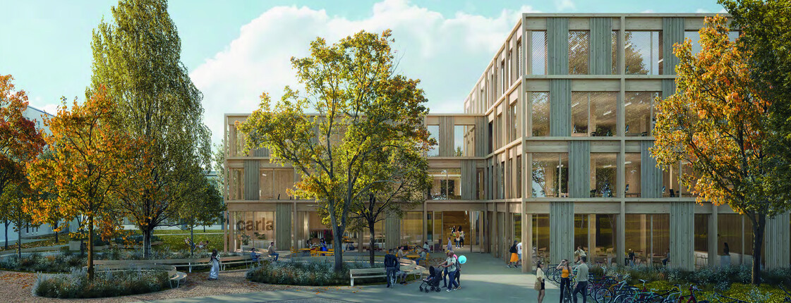 Das neue Gebäude entsteht in nachhaltiger Holzbauweise, ist energieeffizient, ressourcenschonend und erfüllt höchste ökologische Standards.