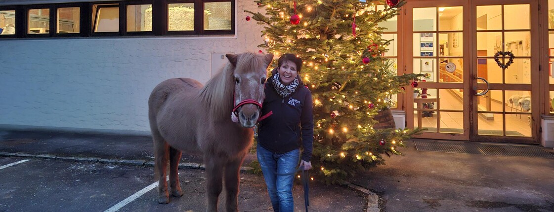 Alle Kinder, Jugendlichen und Erwachsenen, die rund um Weihnachten in das Integrative Reitzentrum kommen, dürfen sich an dem stattlichen, schön geschmückten Weihnachtsbaum freuen. Für strahlenden Glanz sorgt eine Lichterkette, die von der Obi-Filiale Leonding gesponsert wurde.