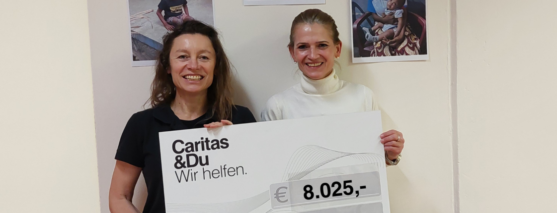 Den Spendenscheck überreichte sie kürzlich der Caritas OÖ, die damit in sechs Krankenhäusern in Kinshasa lebensverändernde Operationen für beeinträchtigte Kinder und Ernährungshilfe für unterernährte Kinder finanziert.