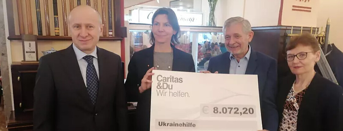 Rund 8.000€ spendete das Café Traxlmayr in Linz an die Ukrainehilfe der Caritas. Es handelt sich dabei um den Erlös des dritten "Ukraine-Tages" im Dezember. Die vier ukrainischen Mitarbeiter*innen des Cafés haben für die Gäste traditionelle Gerichte wie Borschtsch-Suppe und gefüllte Teigtaschen "Wareniki" zubereitet.