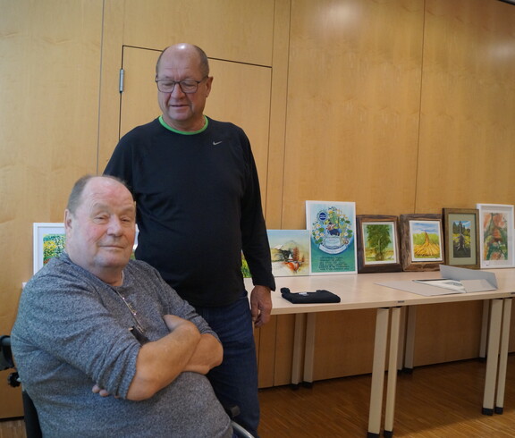 „Eine neurologische Rehabilitation ist extrem zäh. Aber der größte Sprung kam durch die lebenslange Leidenschaft von Herrn Hosa: das Malen“, erklärt Wohnbereichsleiter Alfred Kapplmüller. Wilhelm Hosa wurde mit einem Tape ein Pinsel an den Zeigefinger geklebt. Auf diesem Weg begann er wieder zu malen. Gleichzeitig ging es auch mit seiner Beweglichkeit steil bergauf – auch Schritte am Rollator waren wieder möglich. Heute braucht er kein Tape mehr an seinen Händen, um seiner Leidenschaft zu frönen.